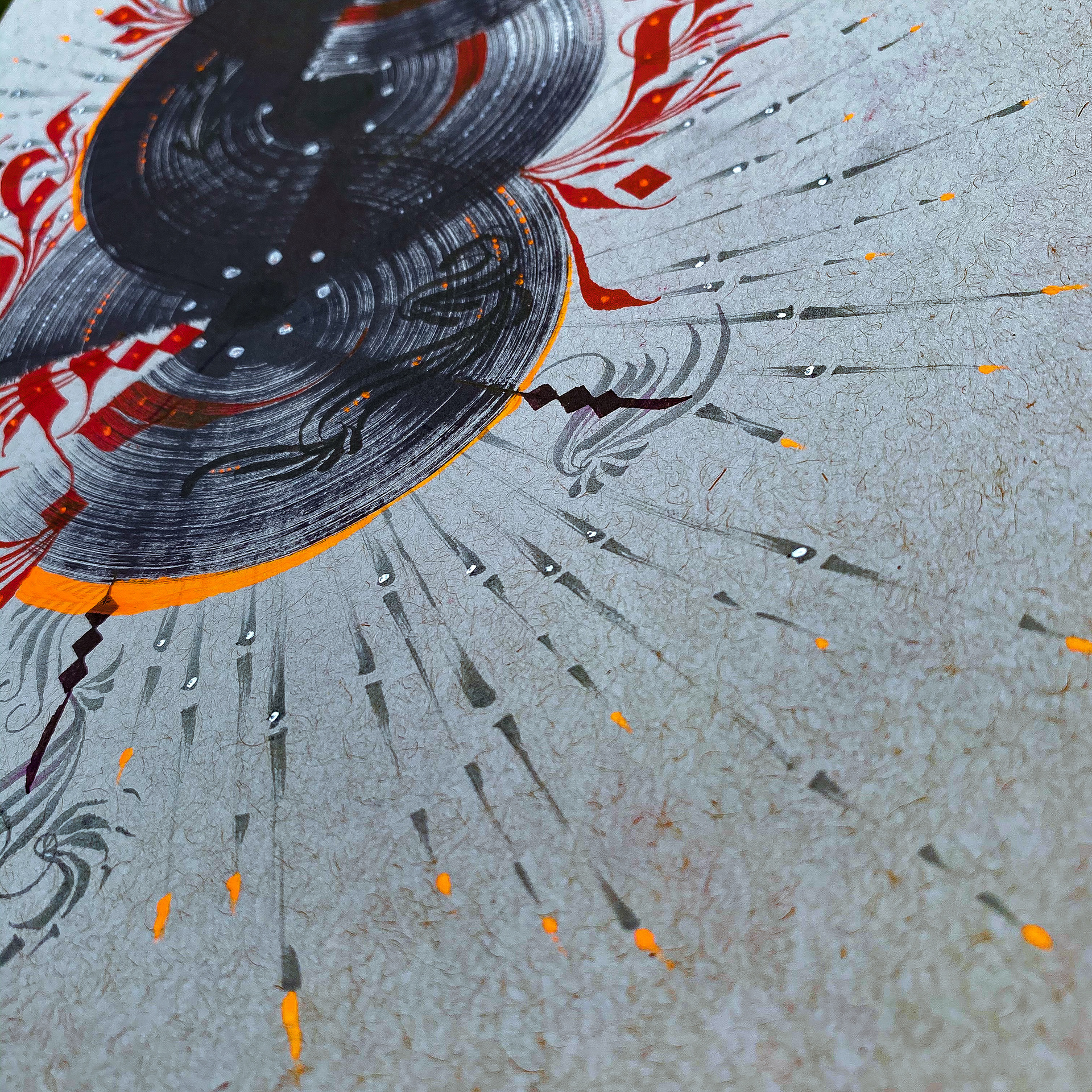 Marks unfold in real-time, shaped by rhythm, pressure, and chance. Calligraphic elements merge with abstraction, capturing the movement and fluidity of the process. Originally spanning over 300 works, this series reflects the endless possibilities of mark-making and the spontaneity of ink on paper.